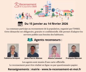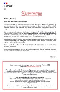 L’ensemble des logements et des habitants seront recensés du 15 janvier au 14 février 2026.